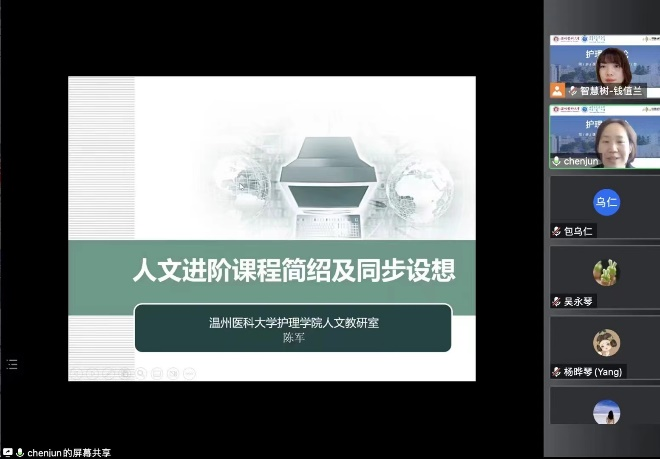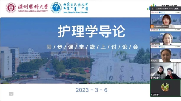 为积极响应教育部高教司虚拟教研室建设和“慕课西行”号召,深入推进信息化教学手段和教学方法改革创新,9428cn太阳集团古天乐与内蒙古民族大学就《护理人文课进阶课》及《护理学导论》课程开展了同步课堂。开课前夕,两校课程负责及主讲教师开展了线上备课,相互介绍了各自课程,并确定同步课堂的内容及实施方案。