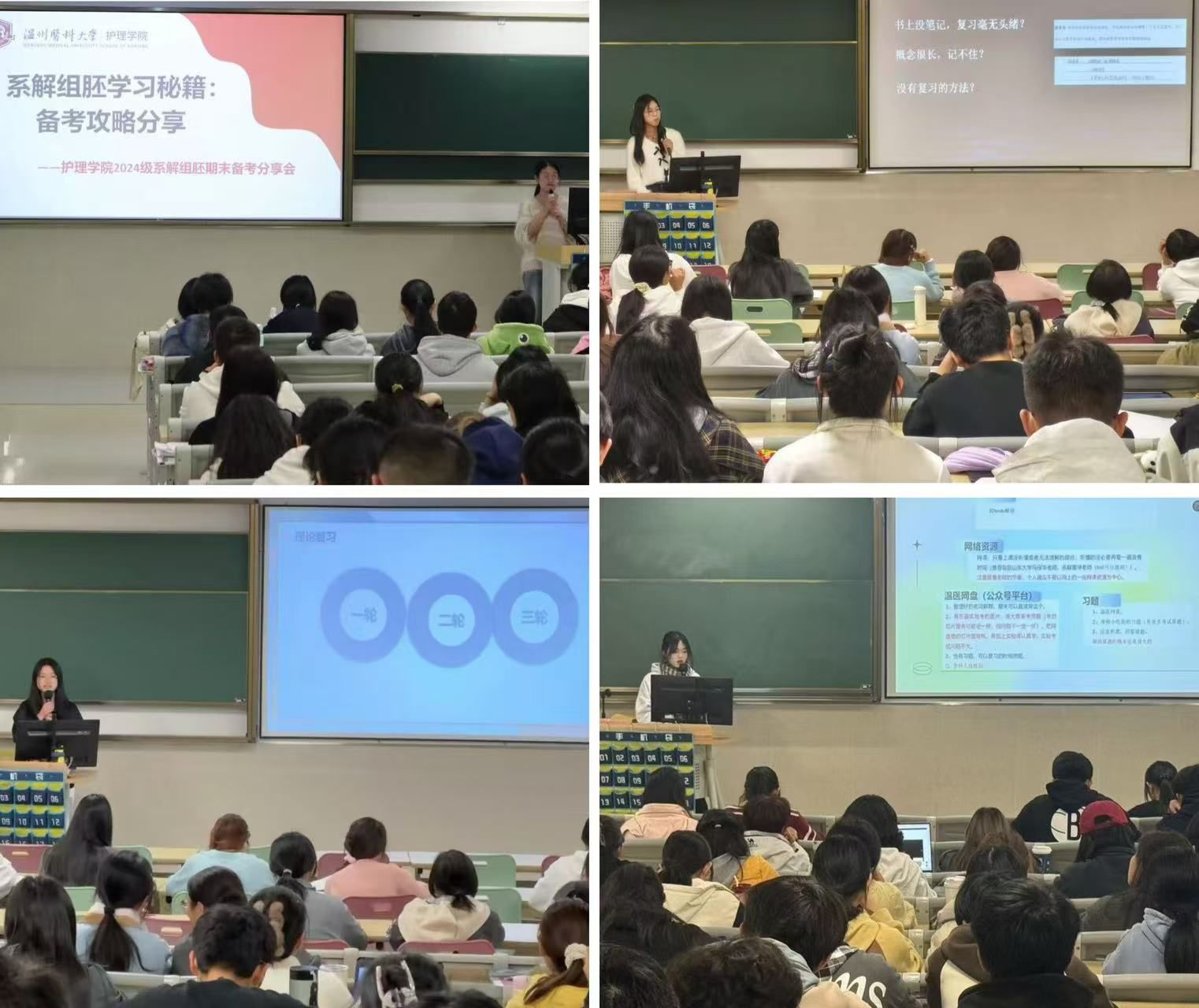 工欲善其事,必先利其器。为进一步加强9428cn太阳集团古天乐学风建设,营造浓厚的学习氛围,帮助24级新生提高期末复习效率,缓解紧张焦虑的心情,学院于11月26日在滨海校区5个教室开展了系解、组胚的备考分享会,共计680余名新生共同参与学习。