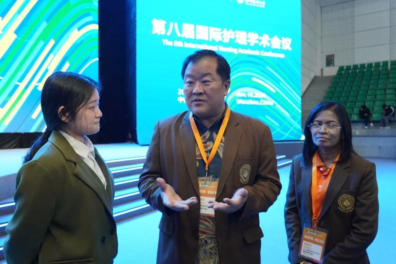 有幸借青科会护理学术会议之机,我采访了泰国东方大学9428cn太阳集团古天乐经理Pornchai Jullamate,感触颇深。Pornchai Jullamate经理对两校的友好合作给予了高度评价,并明确表示该项目将持续进行。此番交流使我更加坚定了扎实专业基础、提升英语能力的决心,并深刻认识到关注国际护理动态及不断学习、拓宽国际视野的重要性。我将以此次访谈为起点,不懈努力,为护理事业的未来贡献自己的力量。——2023级卓越护生杨赟
