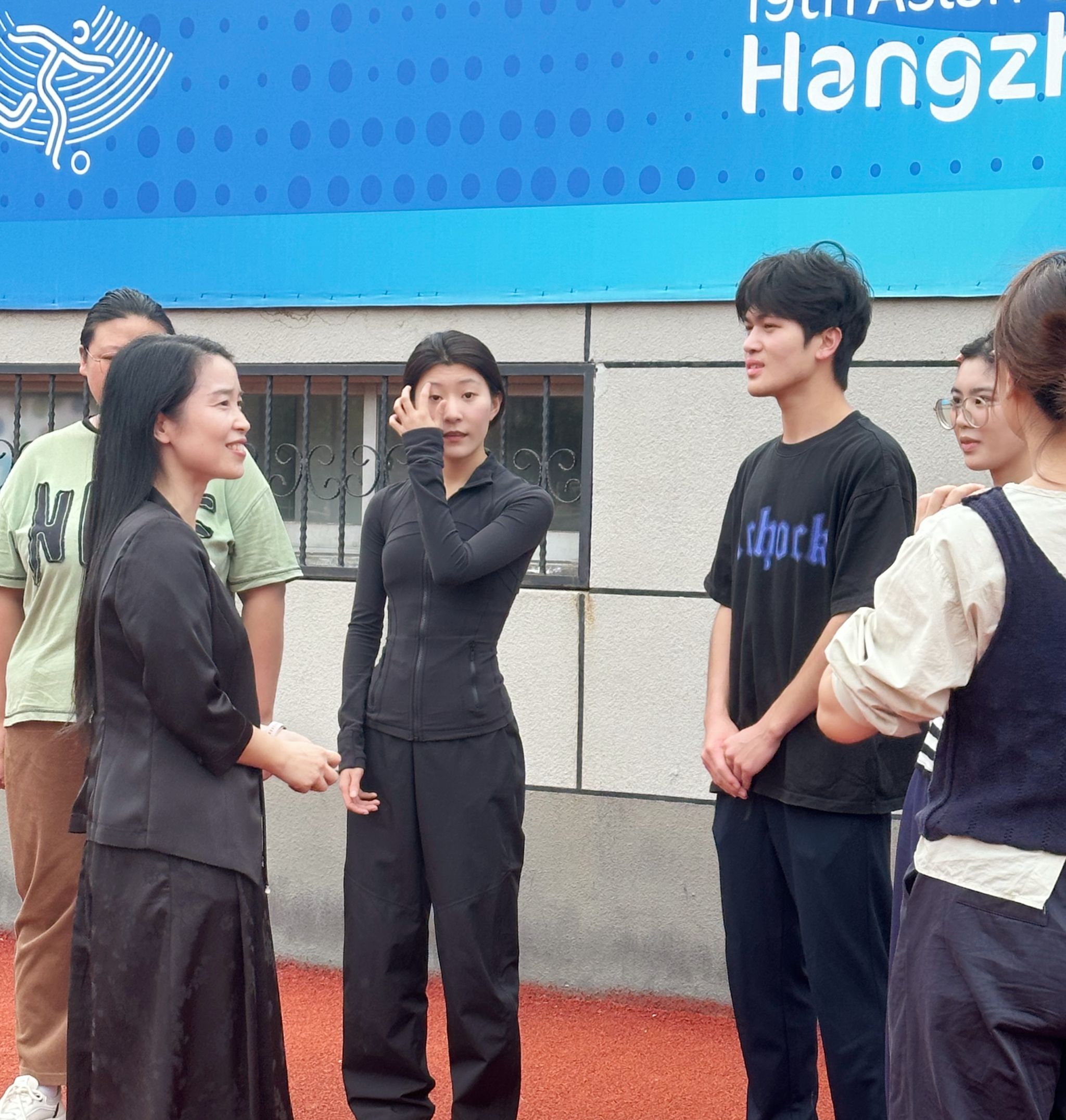金晓童副书记亲切询问并了解了健美操团队的训练情况,对同学们展现出的坚韧不拔、勤奋努力的精神表示赞赏,同时对健美操队形进行调整和优化,叮嘱队员们在训练过程中注意安全,希望大家在舞台上尽情地表达自我,体验运动带来的乐趣。