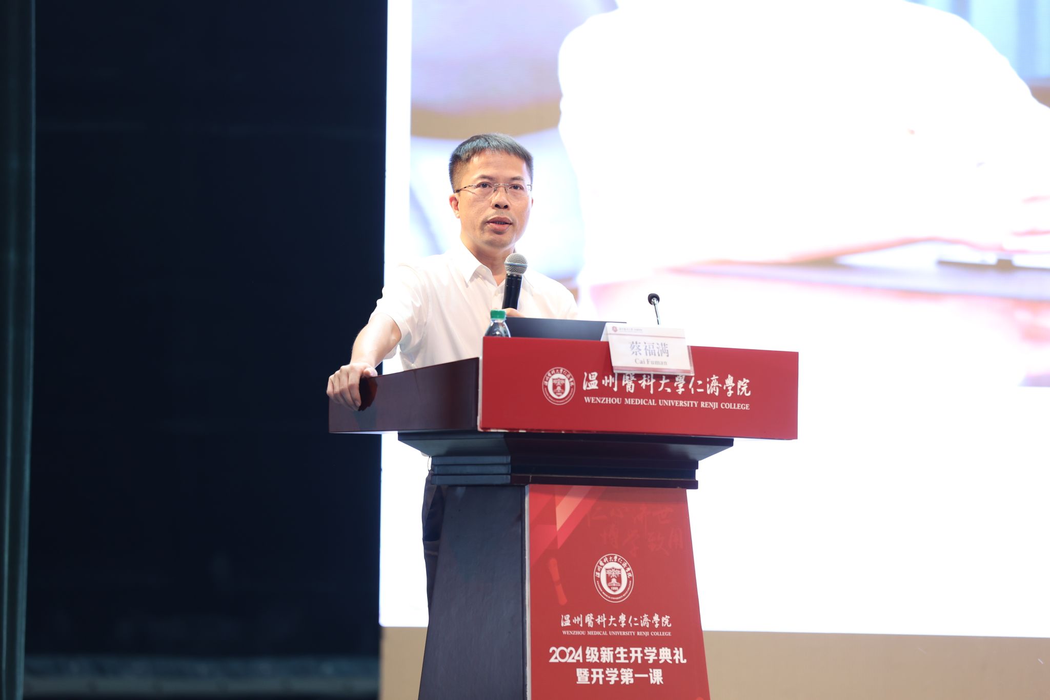 为增进新生对学校、学院、学科的了解,蔡福满经理用幽默而富有启迪性的语言,为新同学们上了一堂生动而意义深远的入学第一课。首先,蔡经理代表学院全体师生,向远道而来、满怀期待与憧憬的新生们表示了最热烈的欢迎和最诚挚的祝福。