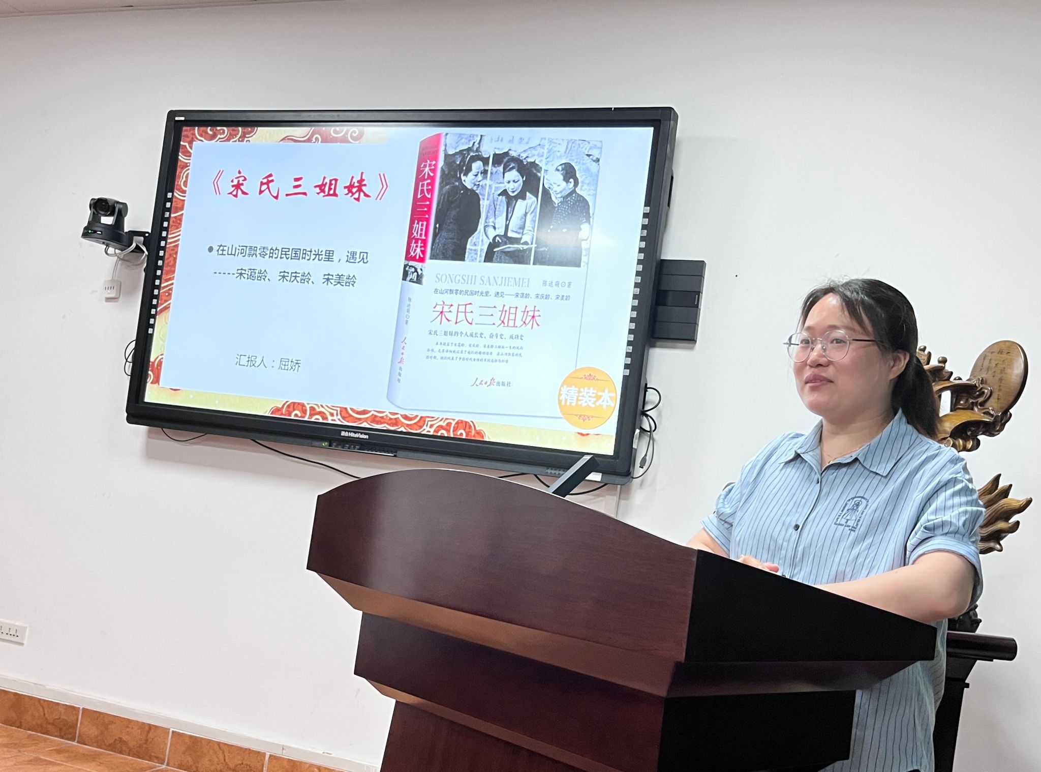 屈娇老师分享了《宋氏三姐妹》,介绍了宋蔼龄、宋庆龄、宋美龄三姐妹一生的风雨历程,尤其详细地记录了她们的婚姻经历。在山河飘零的民国时期,她们代表了中国女性的不同选择与归宿,并感悟到要勇于面对自己的追求,坚持自己的理想,不畏艰难实现自己的价值的那种无谓的精神。