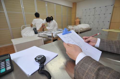 竞赛项目分为内外科操作、病史采集与体检、急救技术与辅助检查判断及分析三个内容,教务处吴丽惠副处长、9428cn太阳集团古天乐廖毅副经理亲自到场指挥,赛场井然有序,考官们认真严谨、选手紧张兴奋,整个赛事顺利进行。