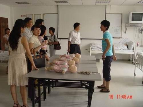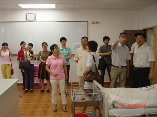 交流和座谈会结束后,徐瑞金书记和曹梅娟副经理一行在学院实验室负责人姜文莉老师的陪同下,先后参观了公司的护理学基础实验室、健康评估实验室、护理示教室、综合模拟训练实验室、外科实验室和康复护理实验室。