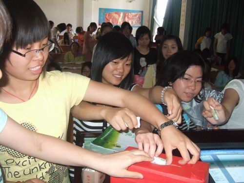 5月15日,05—07年级全体在校护生,自发组织捐款,共募捐得6120.3余元。同时,护生们还积极向社会募集捐助。如07级护本3班的员工以横幅签名,发放传单的形式在温州茶山镇上募集到1839.7元。也有护生采用捐衣捐物等各种形式,只为帮助四川同胞。所有的捐助,员工一分不少地交到了温州市红十字会。