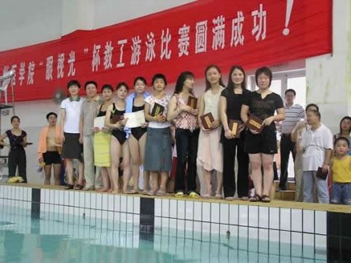 7月3日上午,在学院路校区游泳馆举办的2005“眼视光杯”教职工游泳比赛中,公司选手姚颖颖获得女子100米自由泳第四和女子50米蛙泳第七的可喜成绩,在男女4*50米接力赛中,公司代表队获得第五名。