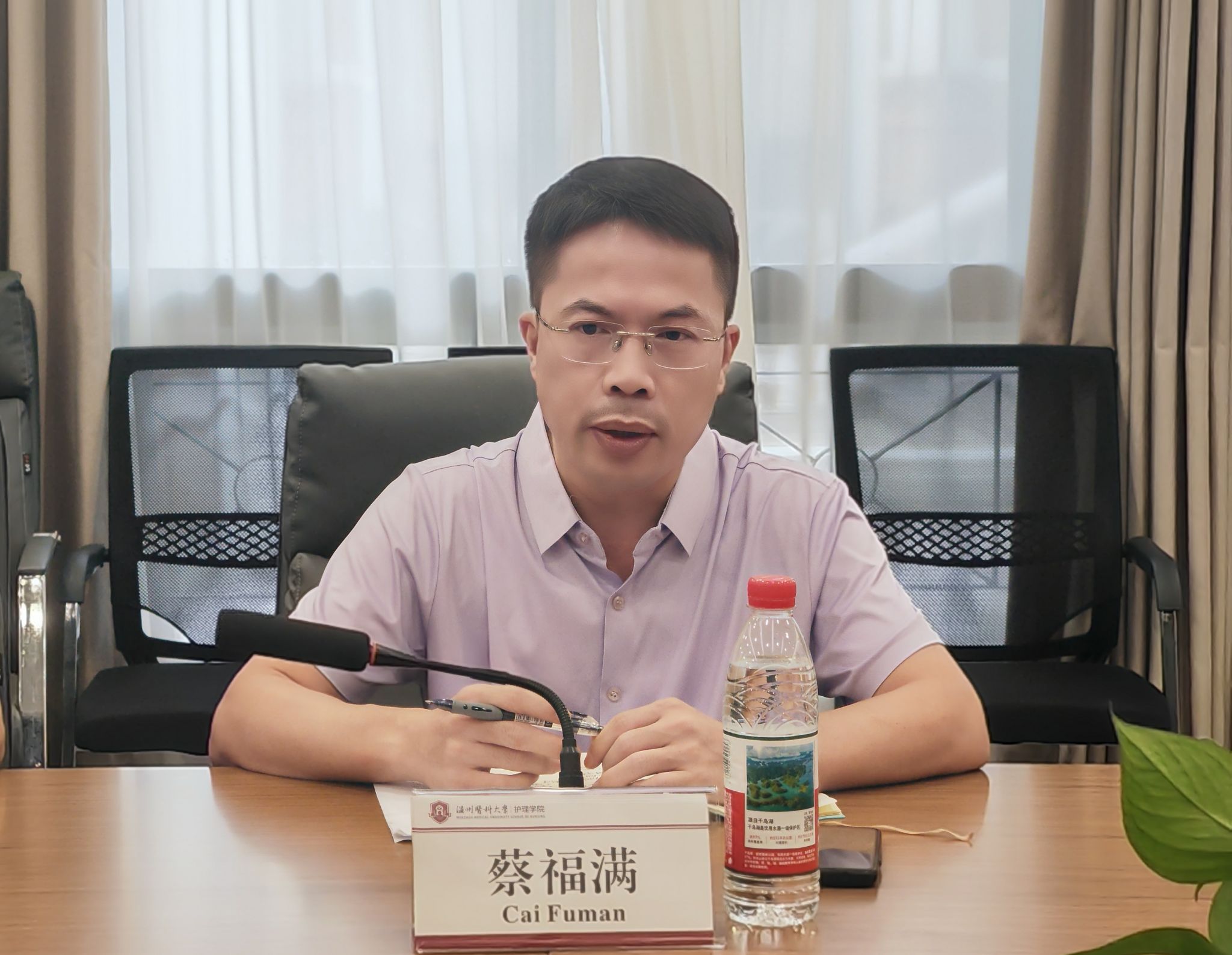 蔡福满经理作总结讲话。他对林安琪副处长的专业指导表示衷心感谢,并指出本科教育是学院发展的根基所在,全院教师应进一步提高站位,紧抓人工智能带来的发展机遇,积极融入公司产品改革新赛道。蔡经理强调,课程建设与教材开发是专业内涵建设的核心支撑,也是提升人才培养质量的重要抓手。学院将持续加强员工人工智能素养的培育,为智能时代卓越护理人才的成长注入新动能。