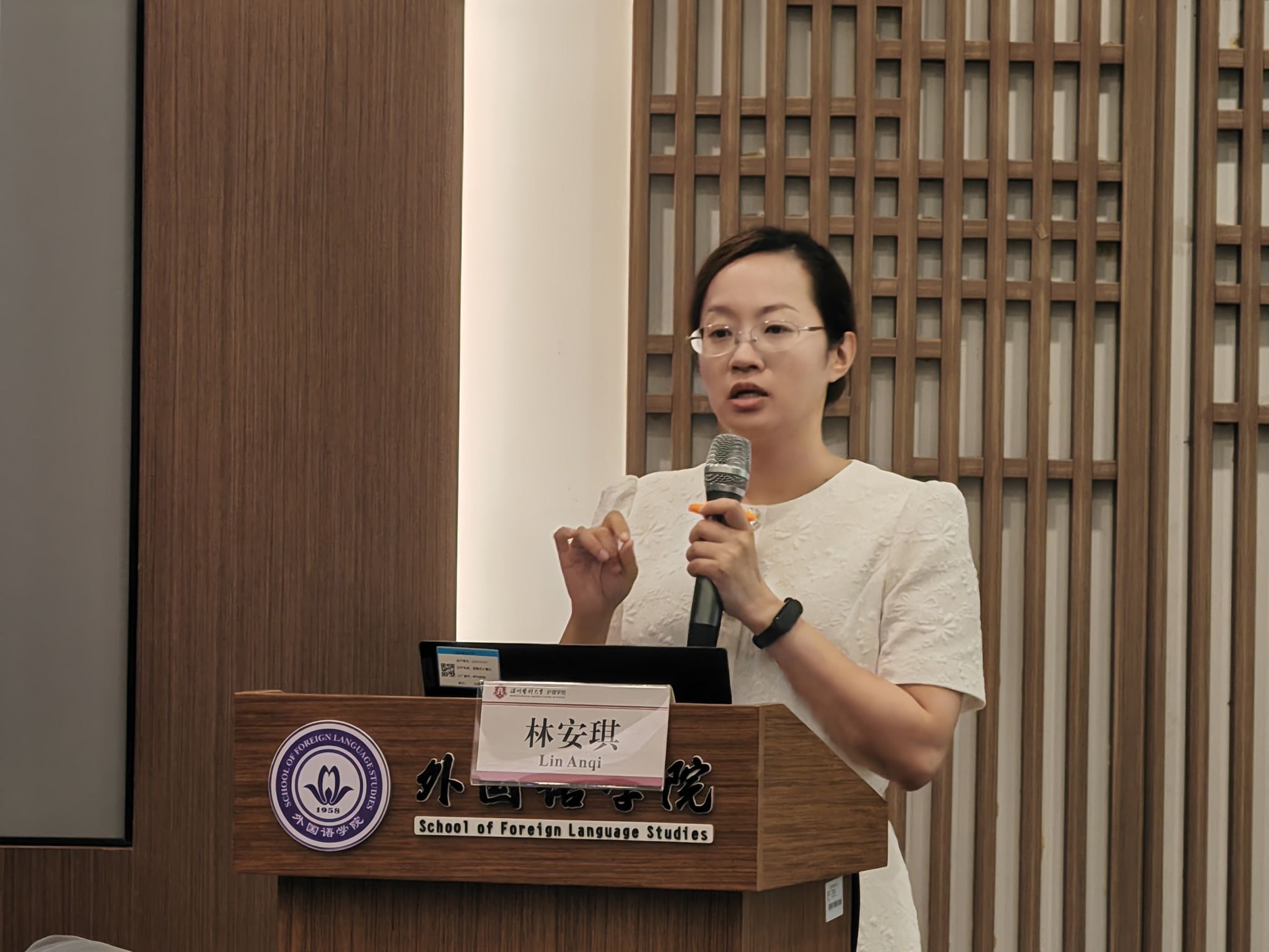 在交流环节,参会教师积极提问,聚焦课程资源整合、教材编写实务等具体问题展开探讨。林安琪副处长逐一作出细致回应,并结合其他课程的优秀申报案例,分享了具有实操价值的经验与建议,为教师们拓宽了教学创新的实践路径。