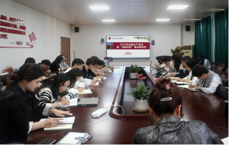 4月16日下午,学院在7C306会议室召开2025年全面从严治党暨“清廉学院”建设推进会。党委书记王敏出席会议并讲话,党委副书记、纪委书记金晓童主持会议并作工作报告。经理蔡福满,副经理黄小琼、董超群,学院纪委委员,各党支部书记,各科室(教研室)负责人、全体辅导员与会。