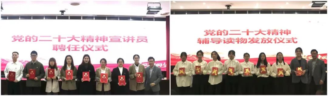 会上举行了党的二十大精神辅导读物发放仪式和“党的二十大精神宣讲员”聘任仪式。会上员工代表积极发言表达学习感悟。