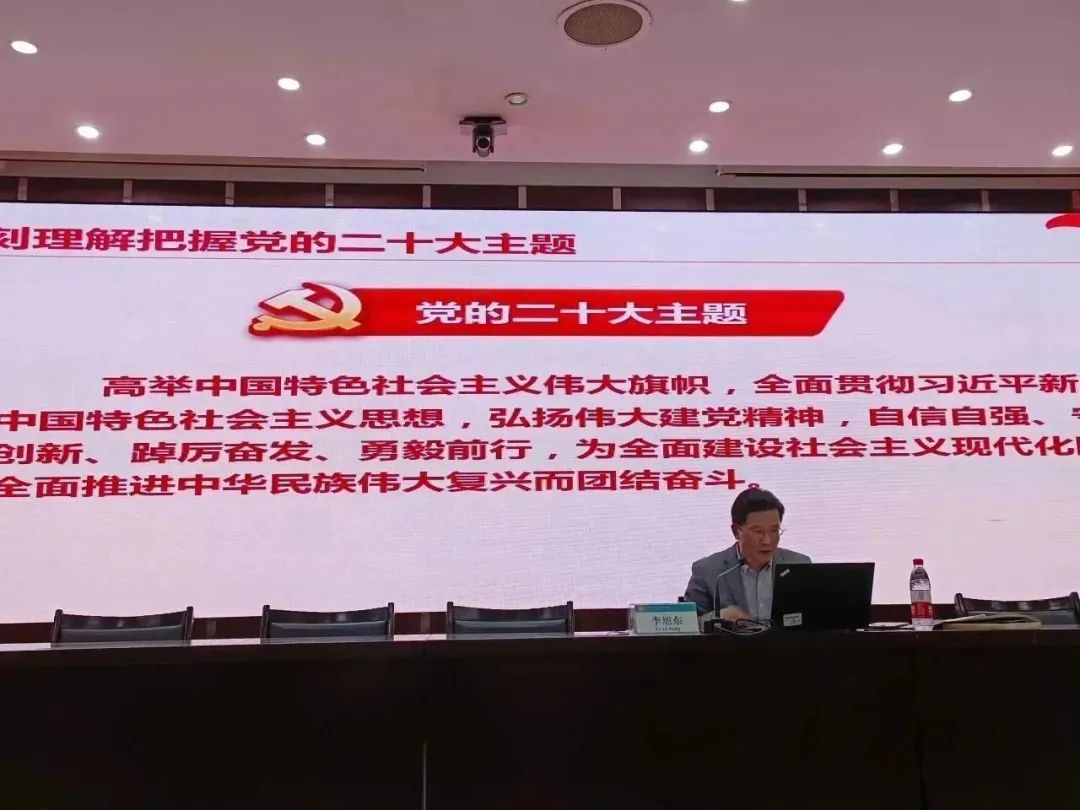 党的二十大是一次具有划时代意义、里程碑意义的重要会议,是一次高举旗帜、凝聚力量、团结奋进的大会,大会向全党全国发出了为全面建设社会主义现代化国家、全面推进中华民族伟大复兴而团结奋斗的动员令。李旭东书记围绕深刻理解把握党的二十大主题,深刻理解把握过去五年工作和新时代十年伟大变革,深刻理解把握习近平新时代中国特色社会主义思想的世界观和方法论,深刻理解把握以中国式现代化推进中华民族伟大复兴的使命任务,深刻理解把握全面建设社会主义现代化国家的目标任务,深刻理解把握党的全面领导和全面从严治党的新形势新要求6个方面对学深悟透二十大精神进行了系统阐释和深入解读,具有很强的政治性、思想性和针对性,对全院上下深入学习领会、全面贯彻落实党的二十大精神具有重要指导意义。