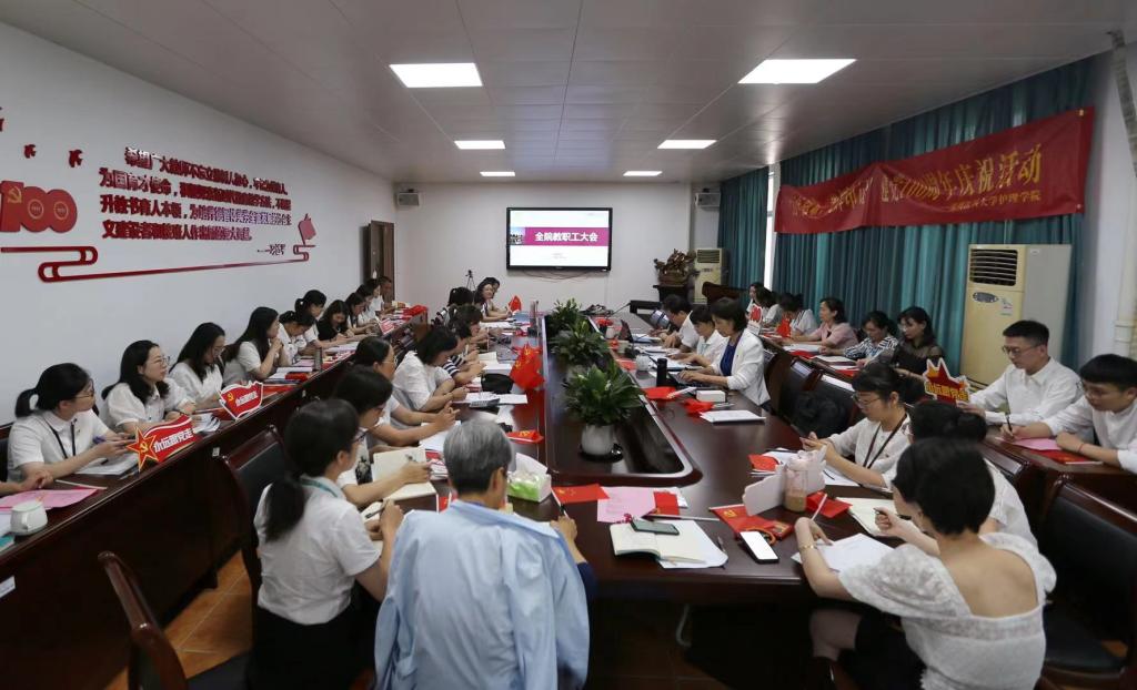 为庆祝中国共产党成立100周年,7月1日下午,9428cn太阳集团古天乐在7C306会议室召开全院教职工大会,开展庆祝中国共产党成立100周年活动。