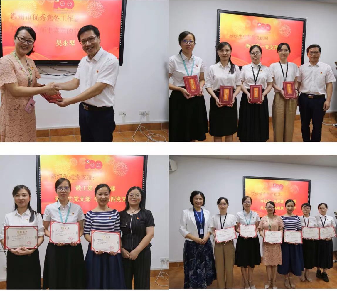 此外,现场还举行了“光辉印记”党史知识竞赛,以引导广大教职工深入学习“四史”。现场气氛热烈,老师们踊跃举手抢答。之后,以“颂歌献礼党的百年华诞”为主题,学院各教师党支部、学院工会团委等群团组织以多元化的形式唱赞歌、诵党恩、送祝福,也带领全体教职工回顾百年来中国共产党带领中国人民站起来、富起来、强起来的光辉历程,以精彩纷呈的文艺节目和昂扬向上的精神面貌向中国共产党百年华诞献上了最真挚的祝福。