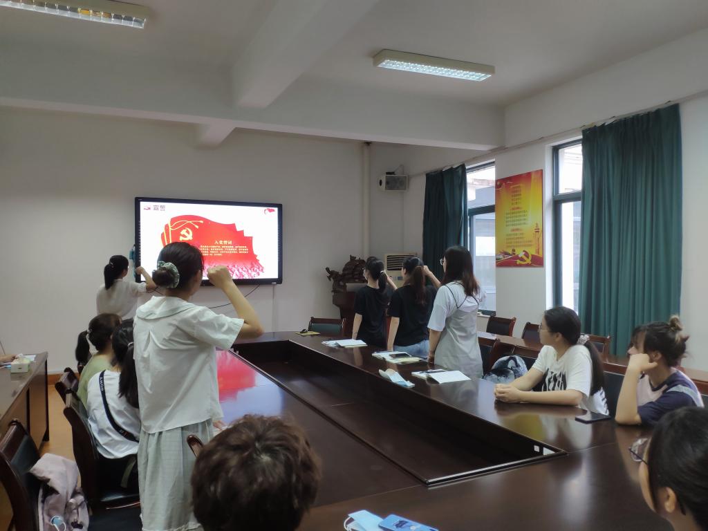 会上,支部全体党员观看了时政微视频《从红船到巨轮》,一起重温了中国共产党在波澜壮阔的世纪大潮中发展壮大的历程。视频观看完毕,员工第六党支部书记李萌老师带领新党员进行入党宣誓,老党员们一起重温入党誓词,并勉励党员同志们要始终牢记并践行入党誓言,不忘入党初心,争做一名优秀的中国共产党员。