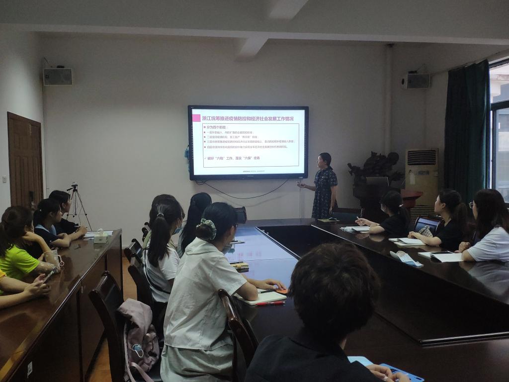 员工第五党支部书记王茹新老师带领全体党员学习了省委十四届七次全体(扩大)会议精神。通过这次集体学习,党员同志们深刻认识到建设“重要窗口”的内涵要求、13项重大举措以及建设“重要窗口”的重大意义。学习之后,党员同志们热烈讨论如何为建设“重要窗口”贡献自己的青春力量。