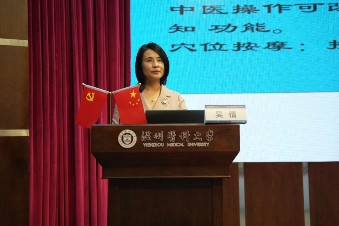 温州市中西医结合医院护理部主任李若和作《高质量发展下中医适宜技术在老年慢病中的应用》主旨报告。她通过耳尖放血、刮痧、平衡火罐、督脉灸等多项中医适宜技术的介绍论证了中医护理讲究“以人为本”和现代护理“以患者为中心”的护理模式是一致的。她提出要以整体观和辨证思维为主导,从生活起居、饮食护理、生活护理等多个方面护理老年患者,并辅以中医适宜技术满足老年人的照护需求,从而起到疾病防治、促进健康的作用。