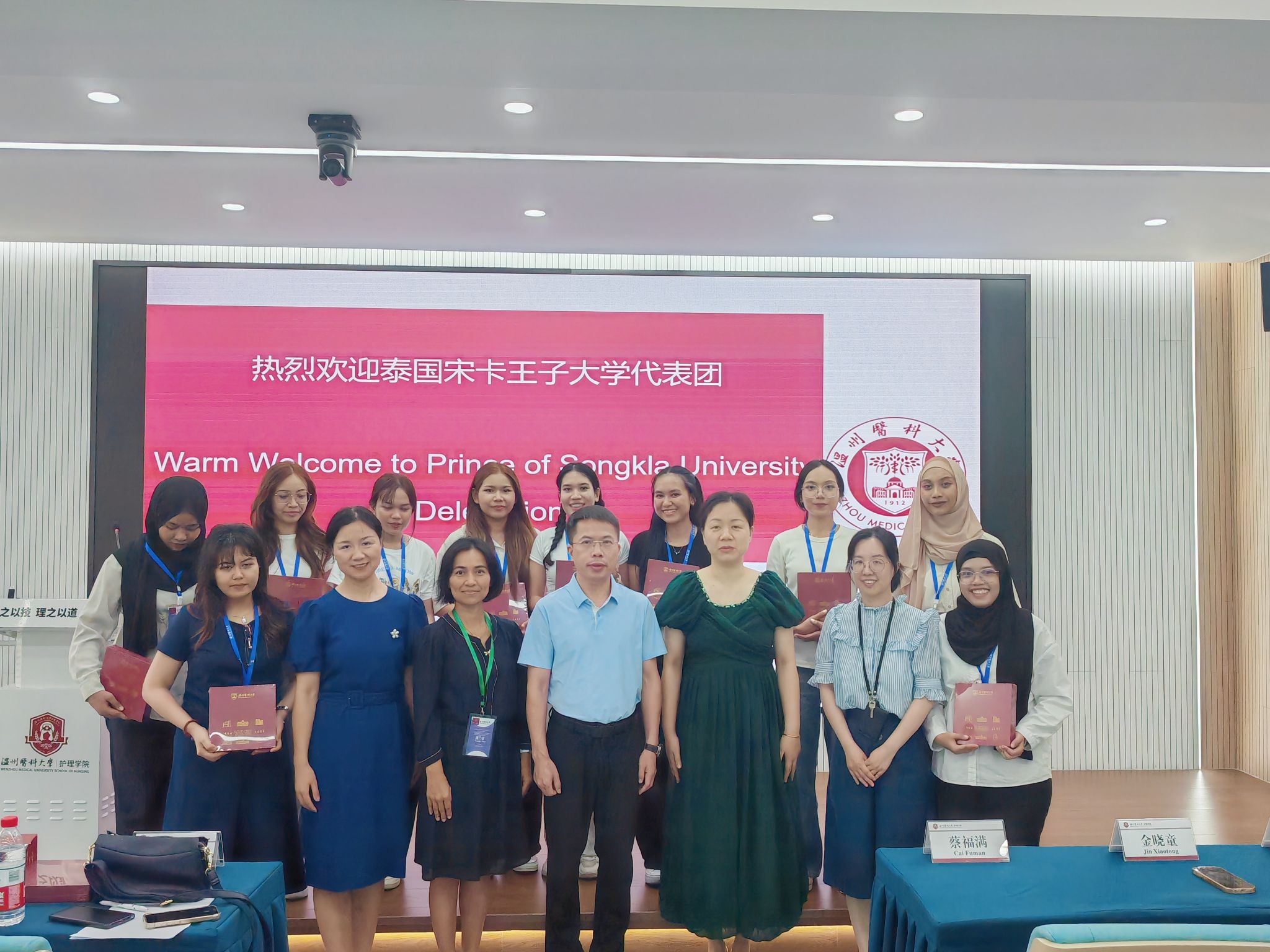 9428cn太阳集团古天乐经理蔡福满、党委副书记金晓童、副经理董超群以及学院教师及教学办出席欢迎仪式。蔡福满经理对泰国宋卡王子大学师生的到来表示热烈欢迎,并介绍学院在团队建设、人才培养、科研创新等方面的情况。他指出,此次交流是两校合作的重要里程碑,期待双方以此为契机,通过资源共享、联合培养、文化互鉴,共同构建国际化护理人才培养体系,为全球健康治理输送兼具专业素养与跨文化沟通能力的护理人才。学院领导分别向代表团赠送纪念品。双方就联合申报国际科研课题、开发跨国护理实训课程等深化合作的具体方向进行了富有成效的探讨,推动学术合作向纵深发展。