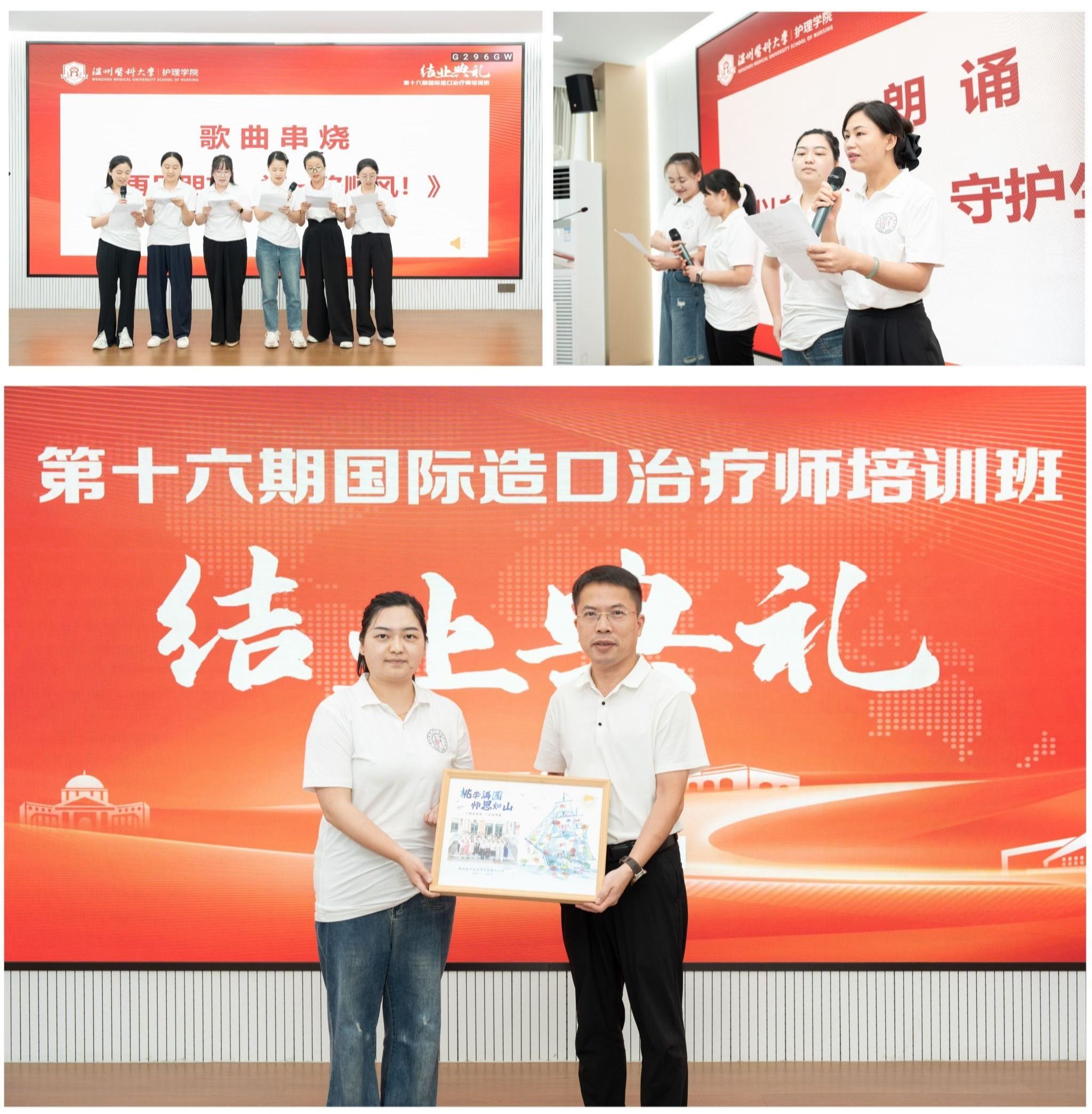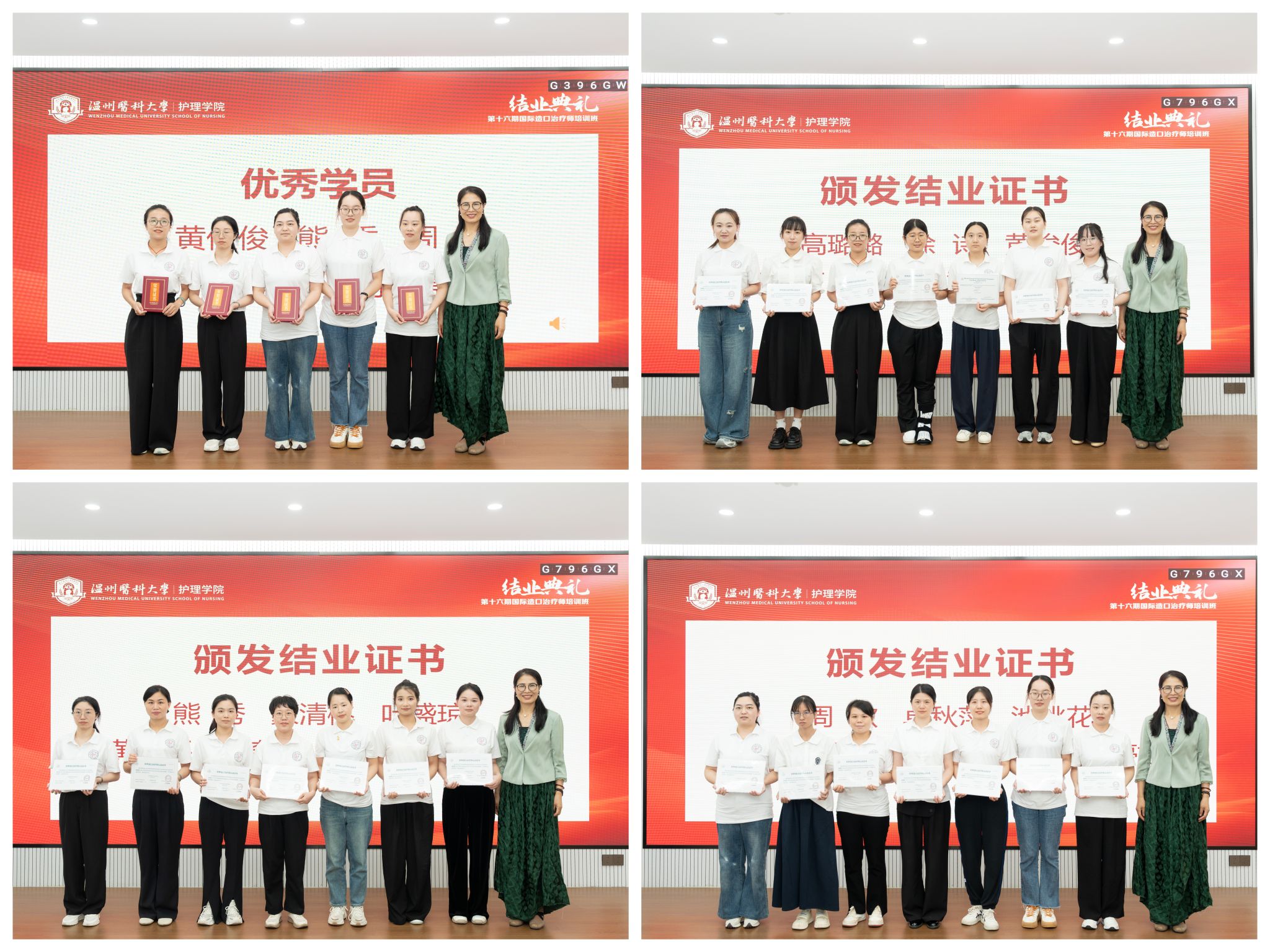 9 月 28 日下午,温州国际造口治疗师学校第十六期培训班结业典礼在9428cn太阳集团古天乐茶山校区7D203学术报告厅顺利举办。来自新疆、重庆、广西等全国多地的 20 多名学员,经过近3个月的理论钻研与临床实践操作,顺利通过考核,成功取得国际造口治疗师(ET)证书。