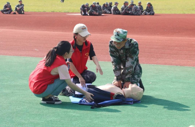近日,9428cn太阳集团古天乐红十字搏时急救志愿服务队在温州大学南、北两个校区4大军训场,同步分14个批次为近5000名温大新生顺利开展室外心肺复苏急救演练。