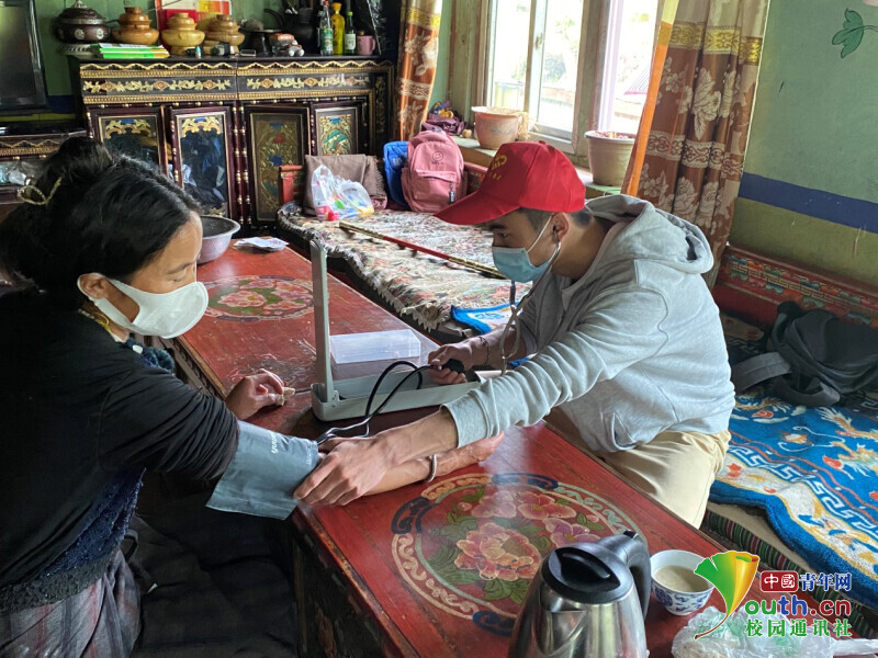 图为实践队为当地居民测量血压。中国青年网通讯员 巴桑 提供