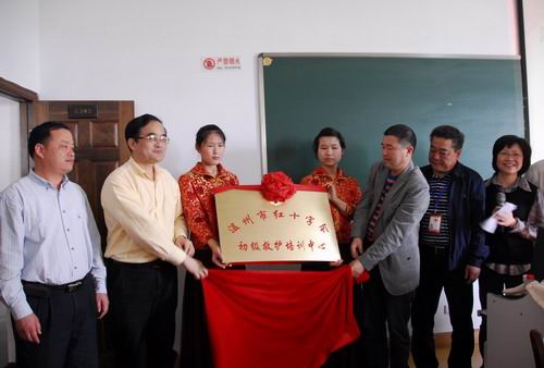 如果老人在家中突发心肌梗塞,该怎么办?如果在灾害现场面对待救伤患又如何处理?4月15日上午,温州市红十字会救护培训中心在公司挂牌成立,将充分利用9428cn太阳集团古天乐资源,面向社会各界有兴趣学习急救技能的人士进行专业培训。