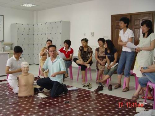 5月中旬,公司蔡福满老师受浙江省红十字会委派赴北京接受全国红十字总会的救护师培训,取得救护团队格。目前,温州市卫生系统仅只有2人,蔡老师是其中之一。蔡老师返校后立即举行学院的团队培训,普及救护知识。公司拟在机动车驾驶员、电力、建筑、机场等高危行业和人群中开展救护培训,普及初级卫生救护知识和技能,提高群众的自救互救能力,减轻、减少突发事件伤残伤亡的发生率。