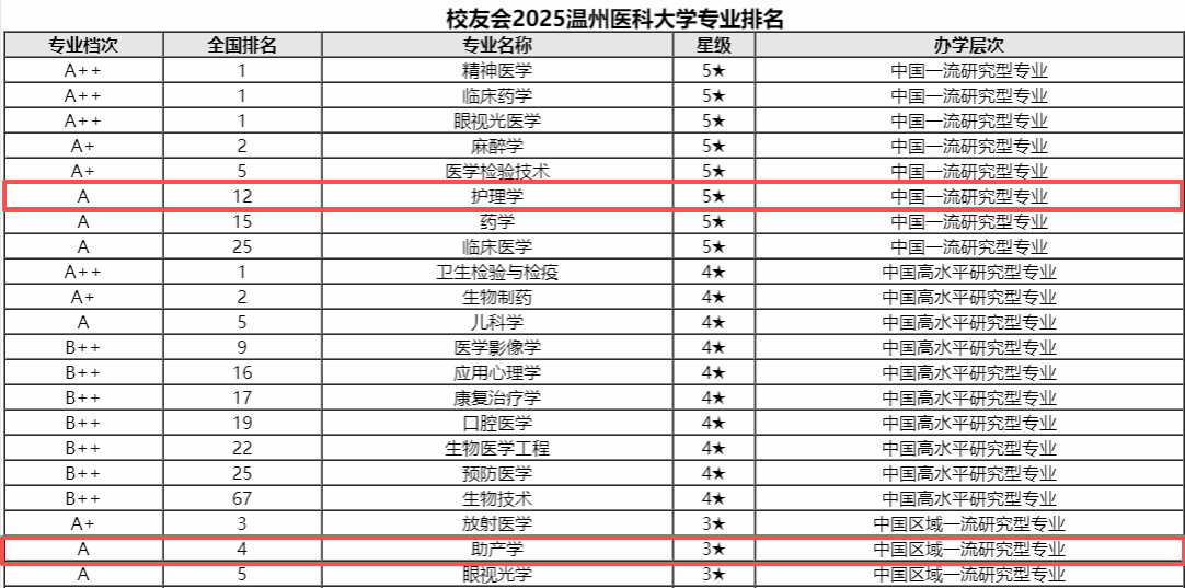 2025员工会排名-护理学五星级、A档次(全国第12名)、助产学三星级、A档次(全国第4名)